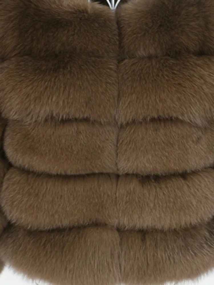 Tjock pälsjacka med rävpäls. Fickor på varje sida. Vi rekommenderar minst 2 storlekar upp.