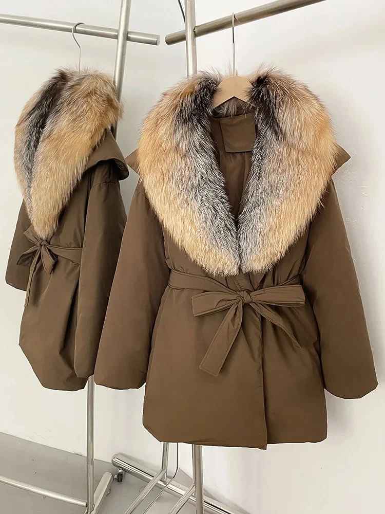 - Lyxig pälskrage och figursmickrande passform