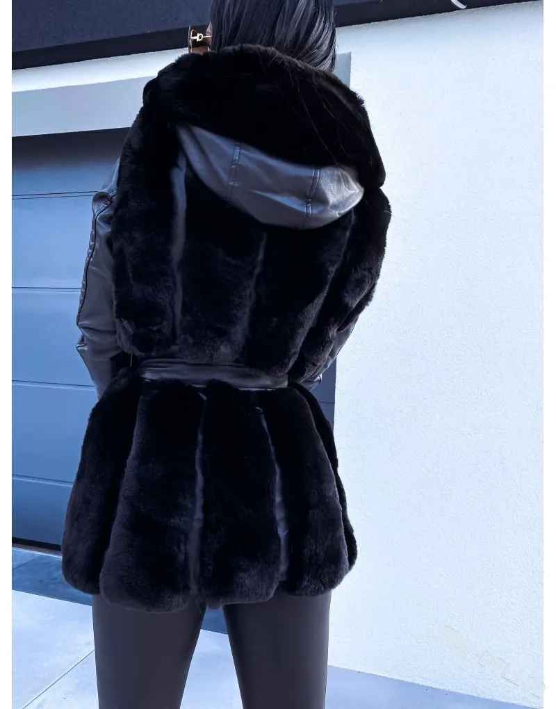Fake fur jacket with belt around the waist. Recommend one size up!